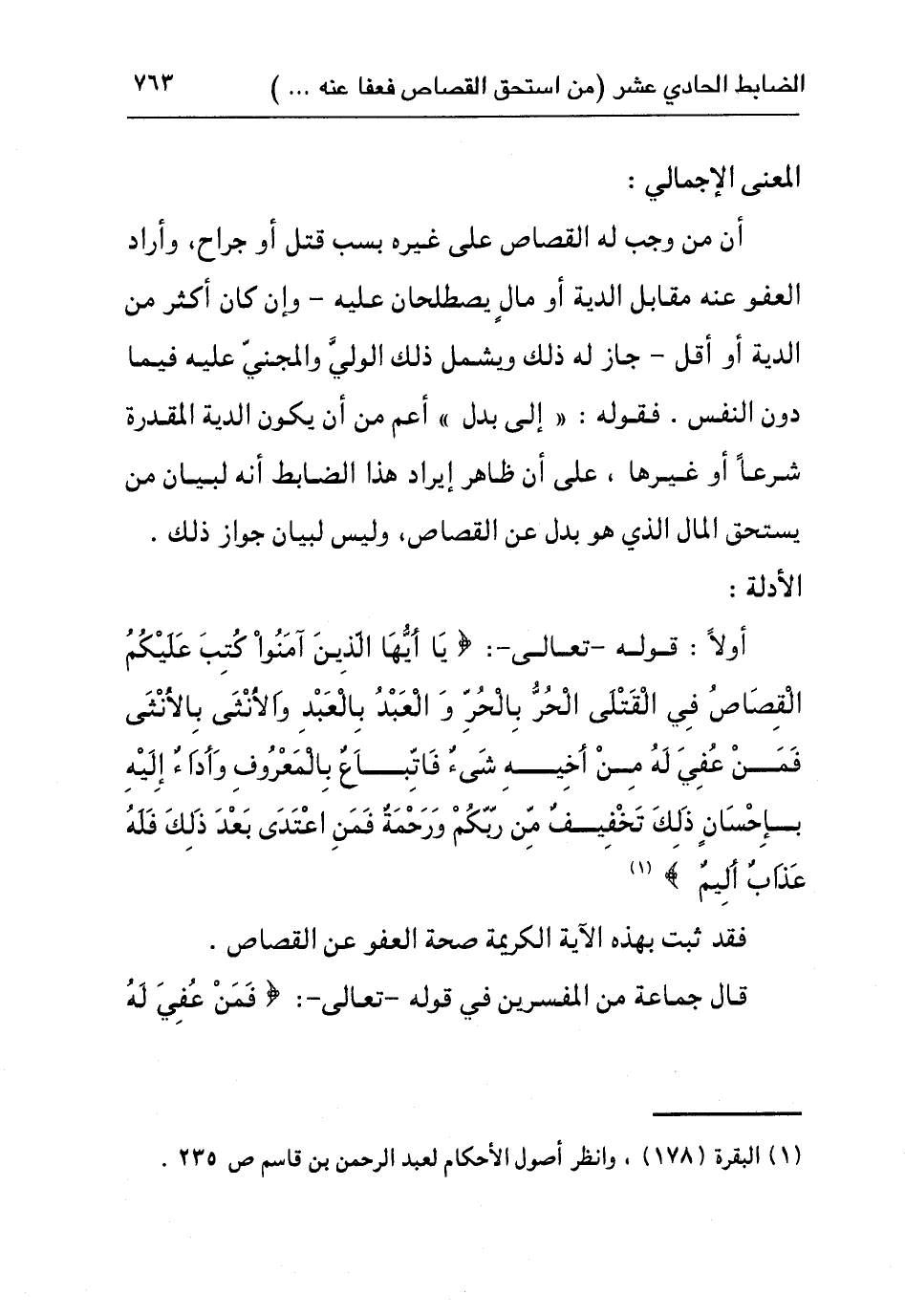 ١ البقرة (١٧٨) , وانظر: أصول الأحكام لعبد الرحمن بن قاسم ص ٢٣٥.