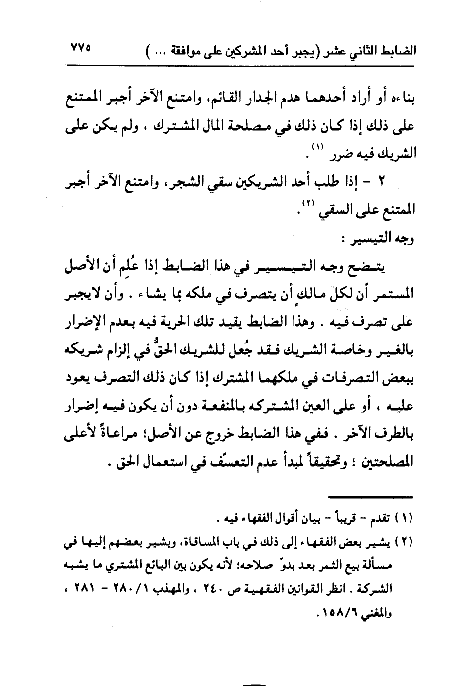 بناءه أو أراد أحدهما هدم الجدار القائم, وامتنع الآخر أجبر الممتنع على ذلك إذا كان ذلك في مصلحة المال المشترك, ولم يكن على الشريك فيه ضرر١