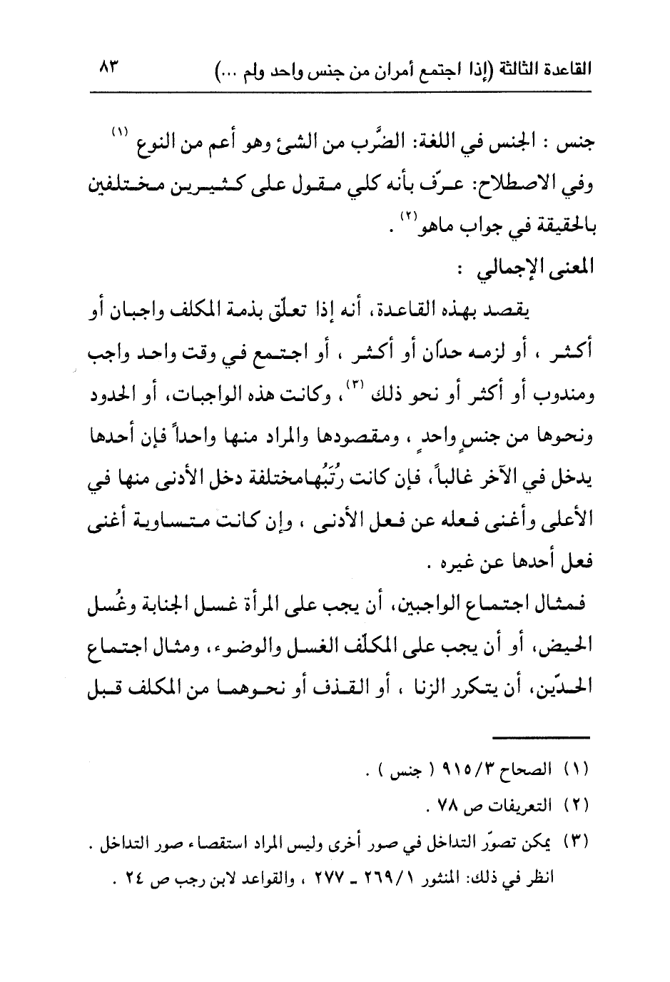 ٣ يمكن تصوّر التداخل في صور أخرى وليس المراد استقصاء صور التداخل. انظر: المنثور ١/٢٦٩-٢٧٧، والقواعد لابن رجب ص٢٤.