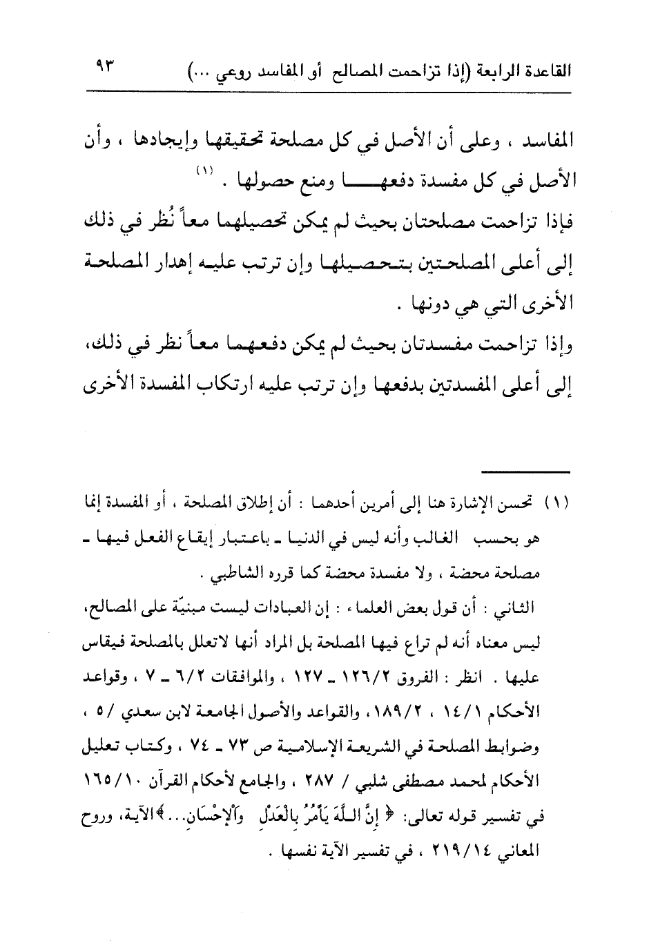 المفاسد، وعلى أن الأصل في كل مصلحة تحقيقها وإيجادها، وأن الأصل في كل مفسدة دفعها ومنع حصولها١.