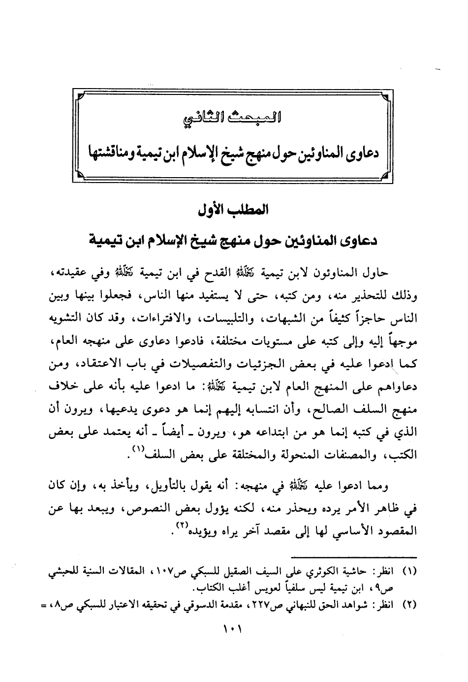 (¬1) انظر: حاشية الكوثري على السيف الصقيل للسبكي ص107، المقالات السنية للحبشي ص9، ابن تيمية ليس سلفياً لعويس أغلب الكتاب.