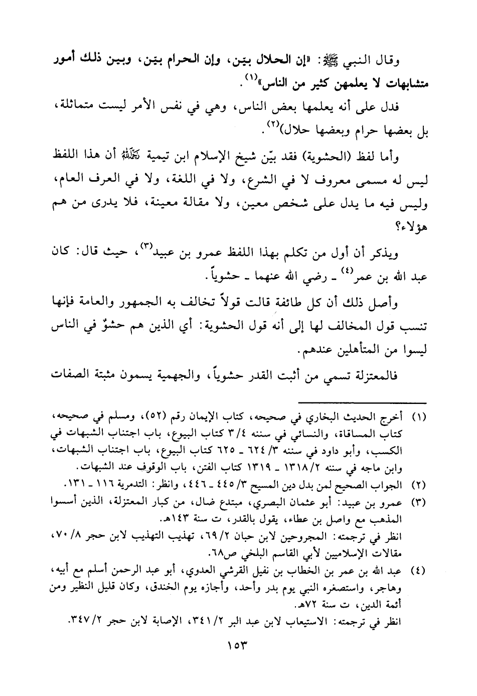 وقال النبي صلّى الله عليه وسلّم: «إن الحلال بيّن، وإن الحرام بيّن، وبين ذلك أمور متشابهات لا يعلمهن كثير من الناس» (¬1) .