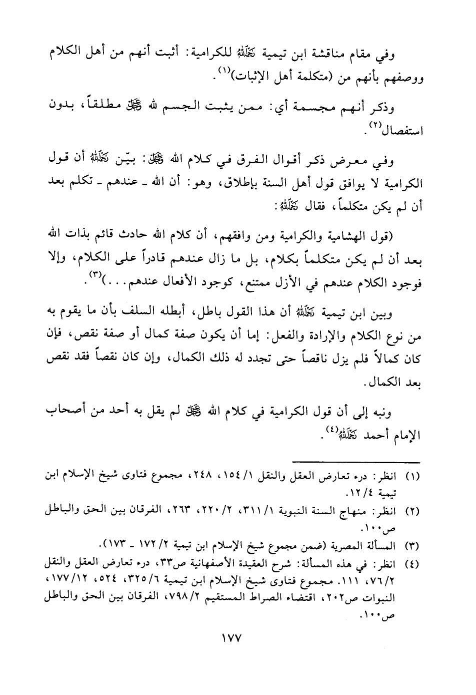 (¬4) انظر: في هذه المسألة: شرح العقيدة الأصفهانية ص33، درء تعارض العقل والنقل 2/76، 111. مجموع فتاوى شيخ الإسلام ابن تيمية 6/325، 524، 12/177، النبوات ص202، اقتضاء الصراط المستقيم 2/798، الفرقان بين الحق والباطل ص100.