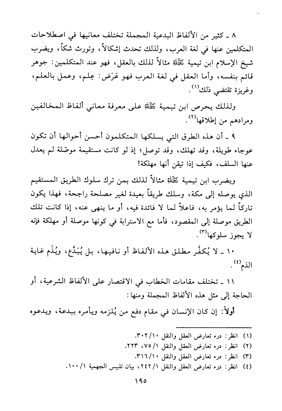 (¬2) انظر: درء تعارض العقل والنقل 1/75، 223.