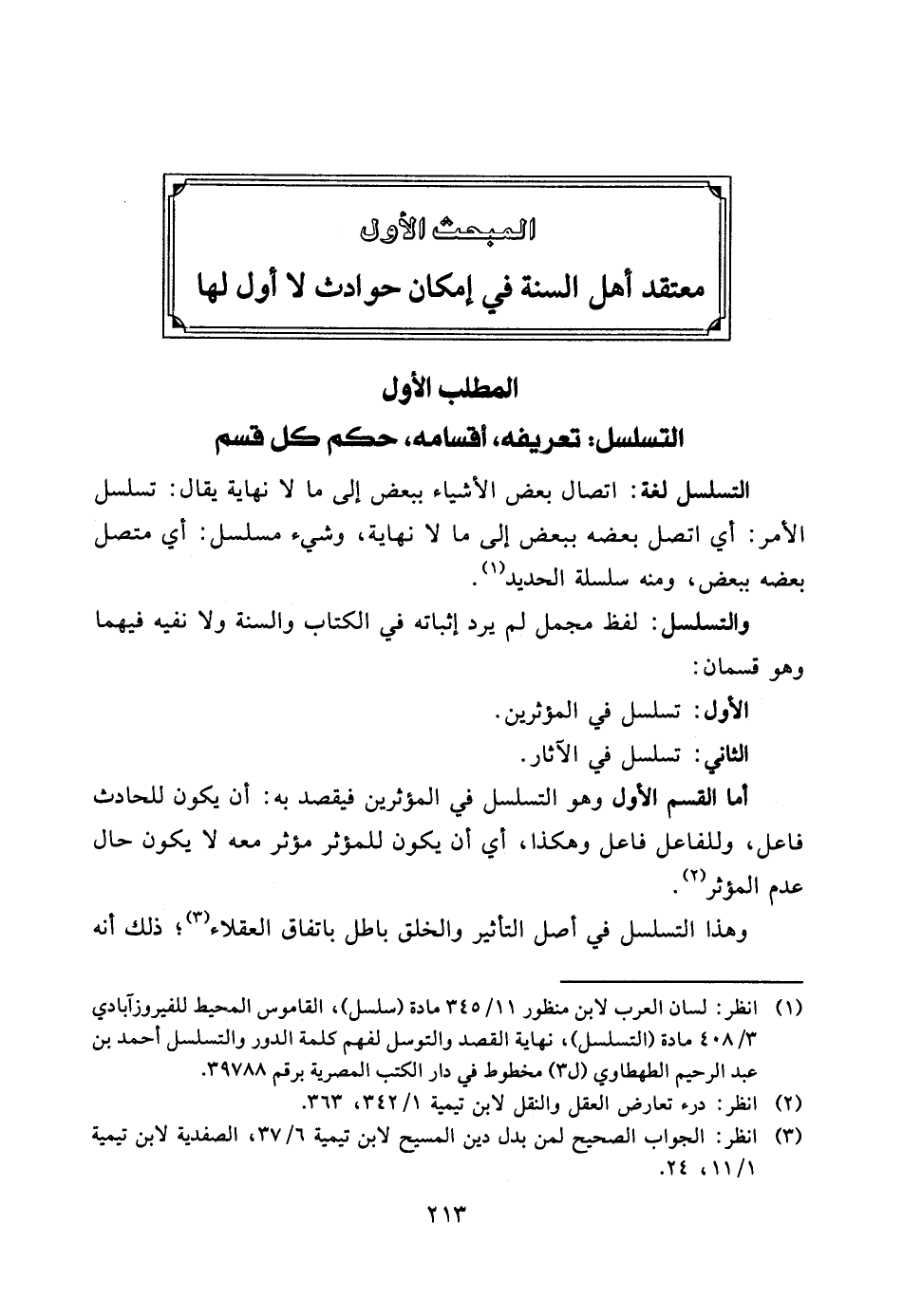 (¬1) انظر: لسان العرب لابن منظور 11/345 مادة (سلسل) ، القاموس المحيط للفيروزآبادي 3/408 مادة (التسلسل) ، نهاية القصد والتوسل لفهم كلمة الدور والتسلسل أحمد بن عبد الرحيم الطهطاوي (ل3) مخطوط في دار الكتب المصرية برقم 39788.