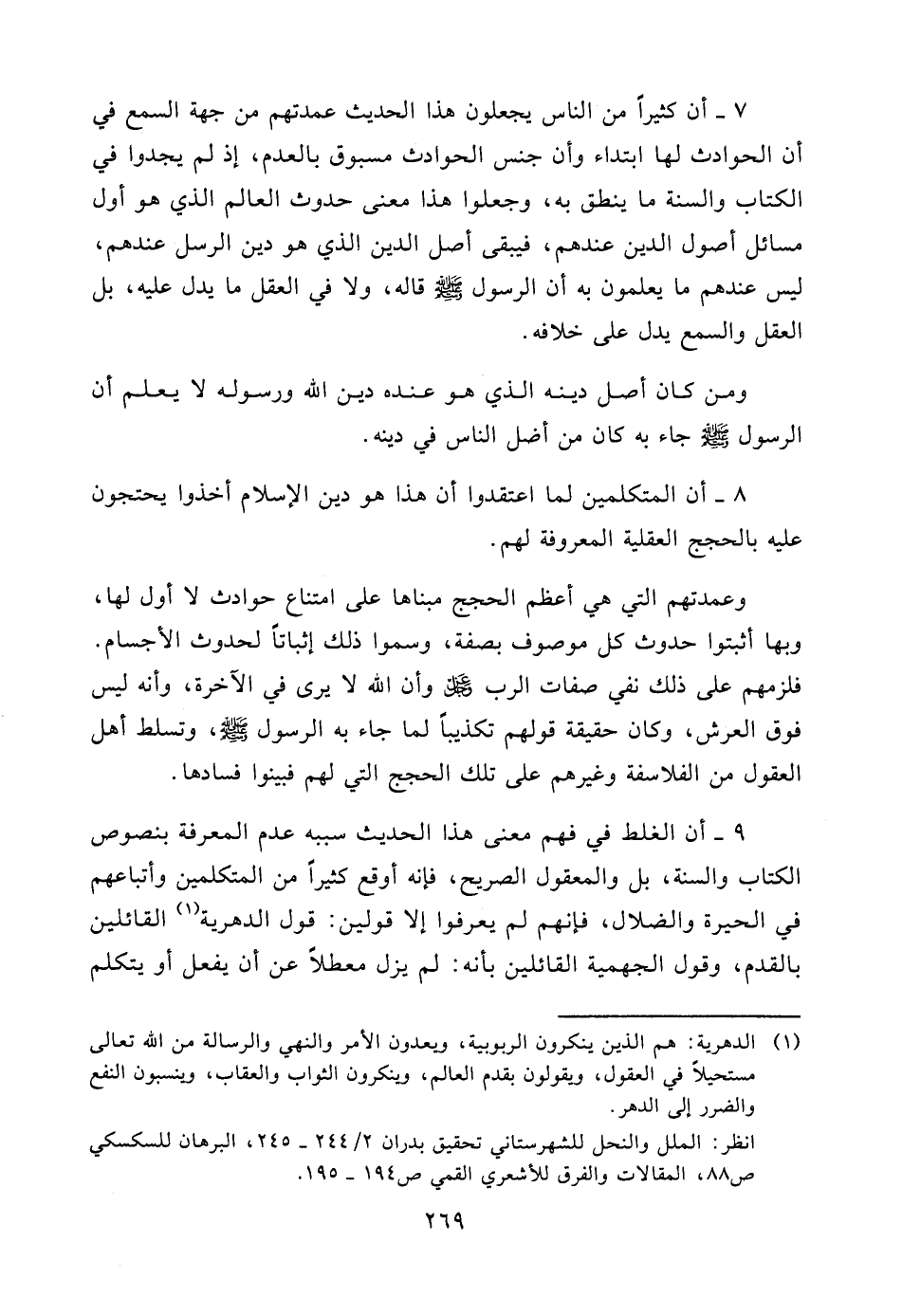 8 - أن المتكلمين لما اعتقدوا أن هذا هو دين الإسلام أخذوا يحتجون عليه بالحجج العقلية المعروفة لهم.