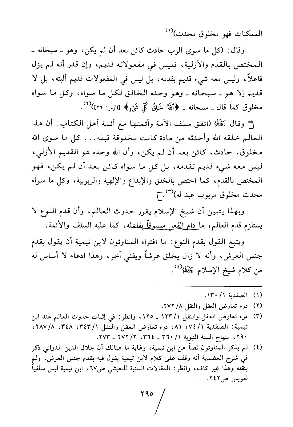 (¬3) درء تعارض العقل والنقل 1/123 - 125، وانظر: في إثبات حدوث العالم عند ابن تيمية: الصفدية 1/74، 81، درء تعارض العقل والنقل 1/343، 348، 8/287، 290، منهاج السنة النبوية 1/360 - 364، 2/272 - 273.
