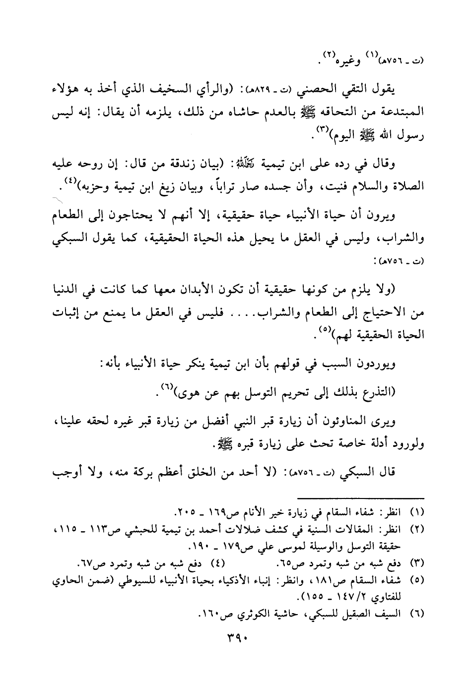 (¬5) شفاء السقام ص181، وانظر: إنباء الأذكياء بحياة الأنبياء للسيوطي (ضمن الحاوي للفتاوي 2/147 - 155) .