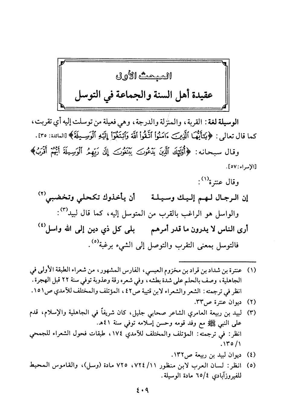 (¬5) انظر: لسان العرب لابن منظور 11/724، 725 مادة (وسل) ، والقاموس المحيط للفيروزآبادي 4/65 مادة الوسيلة.