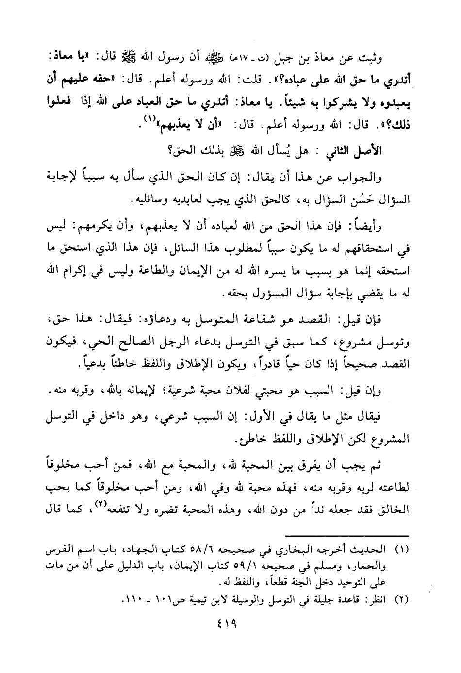 (¬2) انظر: قاعدة جليلة في التوسل والوسيلة لابن تيمية ص101 - 110.