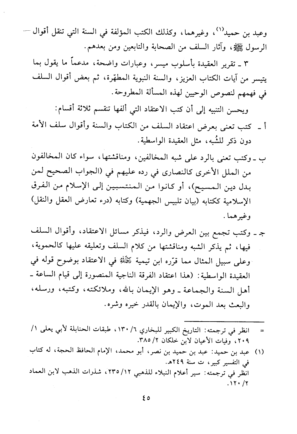3 - تقرير العقيدة بأسلوب ميسر، وعبارات واضحة، مدعماً ما يقول بما يتيسر من آيات الكتاب العزيز، والسنة النبوية المطهّرة، ثم بعض أقوال السلف في فهمهم لنصوص الوحيين لهذه المسألة المطروحة.