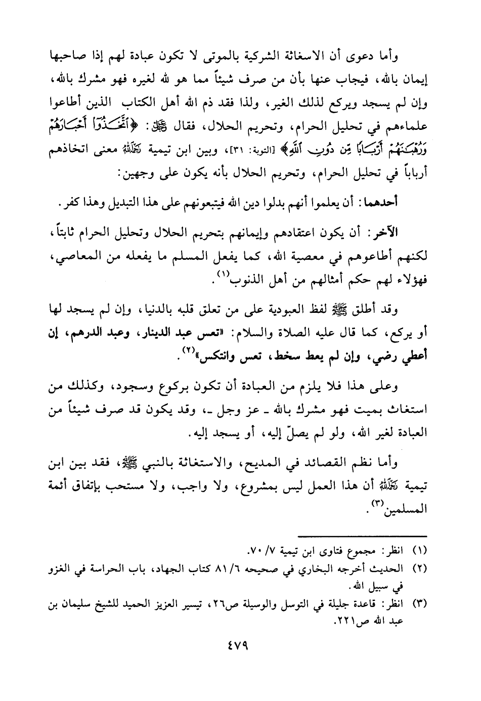 (¬3) انظر: قاعدة جليلة في التوسل والوسيلة ص26، تيسير العزيز الحميد للشيخ سليمان بن عبد الله ص221.