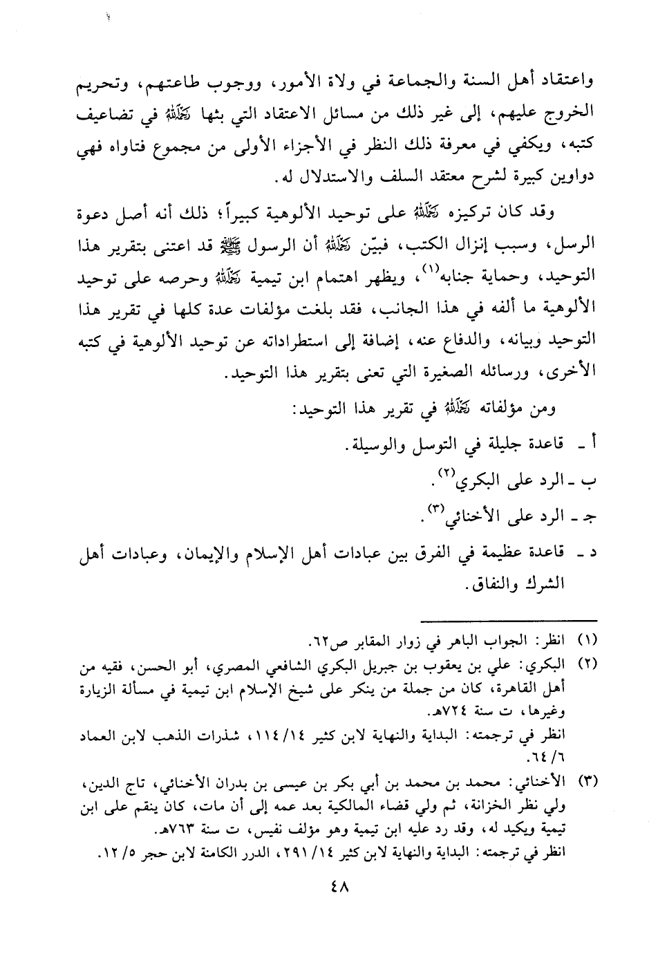 (¬2) البكري: علي بن يعقوب بن جبريل البكري الشافعي المصري، أبو الحسن، فقيه من أهل القاهرة، كان من جملة من ينكر على شيخ الإسلام ابن تيمية في مسألة الزيارة وغيرها، ت سنة 724هـ.