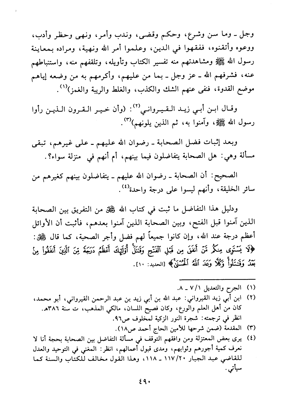 (¬4) يرى بعض المعتزلة ومن وافقهم التوقف في مسألة التفاضل بين الصحابة بحجة أنا لا نعرف كمية أجورهم وثوابهم، ومدى قبول أعمالهم، انظر: المغني في التوحيد والعدل للقاضي عبد الجبار 20/117 - 118، وهذا القول مخالف للكتاب والسنة كما سيأتي.