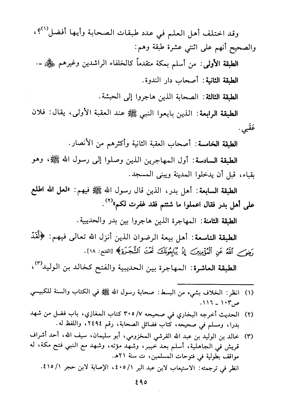 وقد اختلف أهل العلم في عدد طبقات الصحابة وأيها أفضل (¬1) ؟، والصحيح أنهم على اثنتي عشرة طبقة وهم: