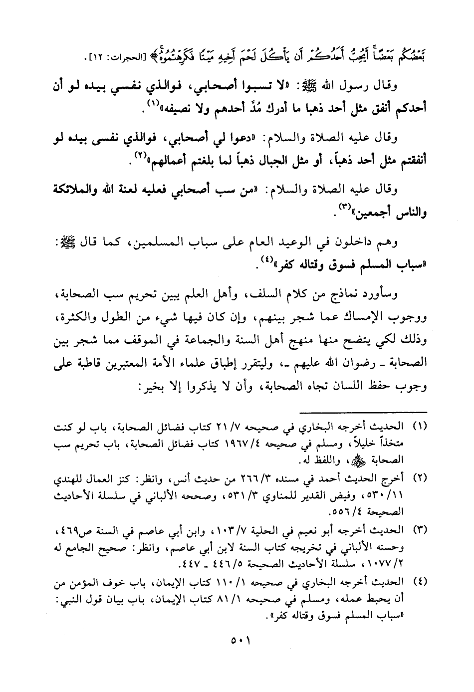 وقال عليه الصلاة والسلام: «من سب أصحابي فعليه لعنة الله والملائكة والناس أجمعين» (¬3) .