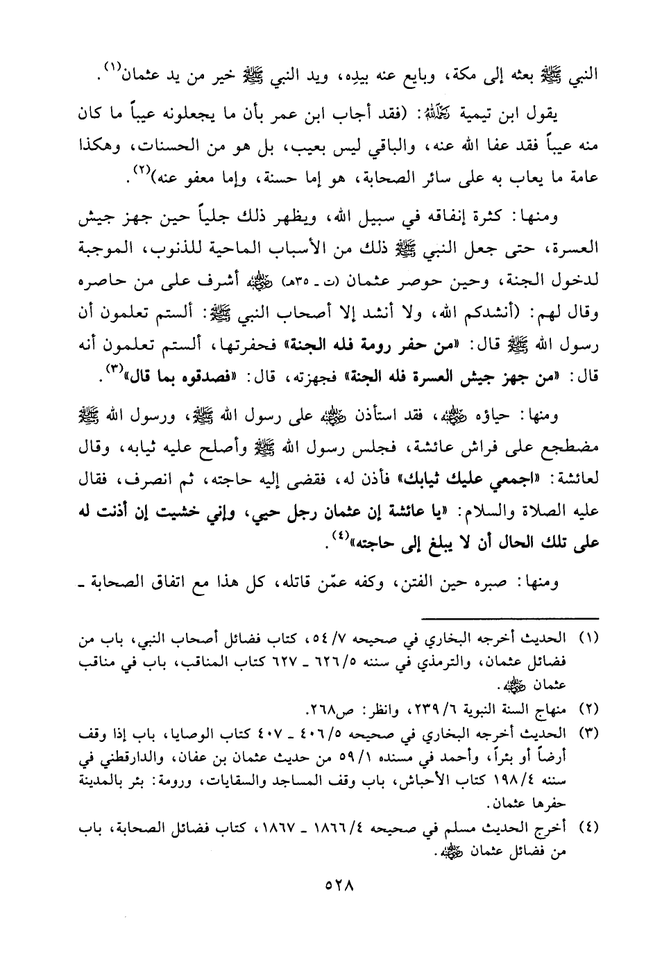 (¬4) أخرج الحديث مسلم في صحيحه 4/1866 - 1867، كتاب فضائل الصحابة، باب من فضائل عثمان رضي الله عنه.