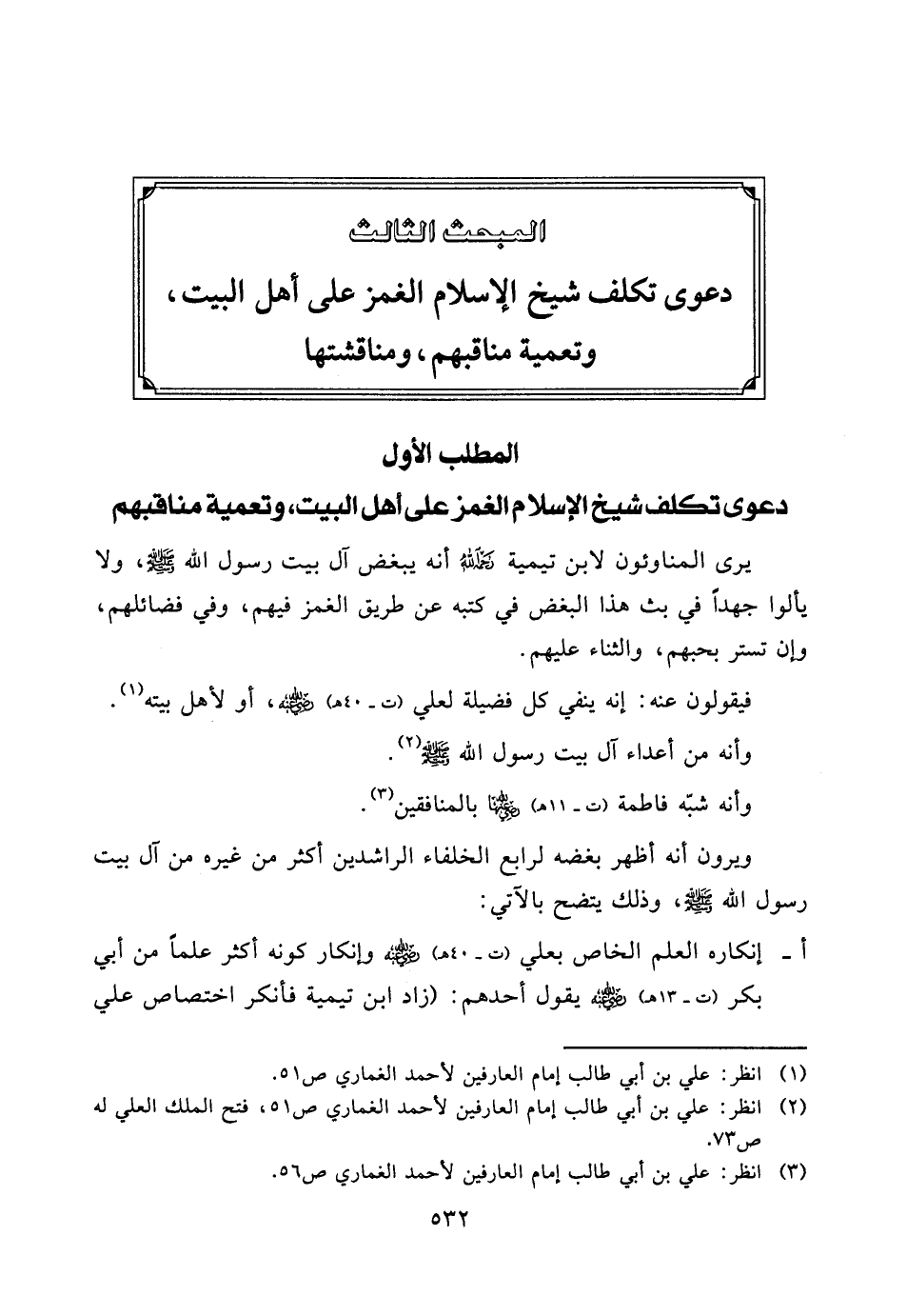 دعوى تكلف شيخ الإسلام الغمز على أهل البيت، وتعمية مناقبهم