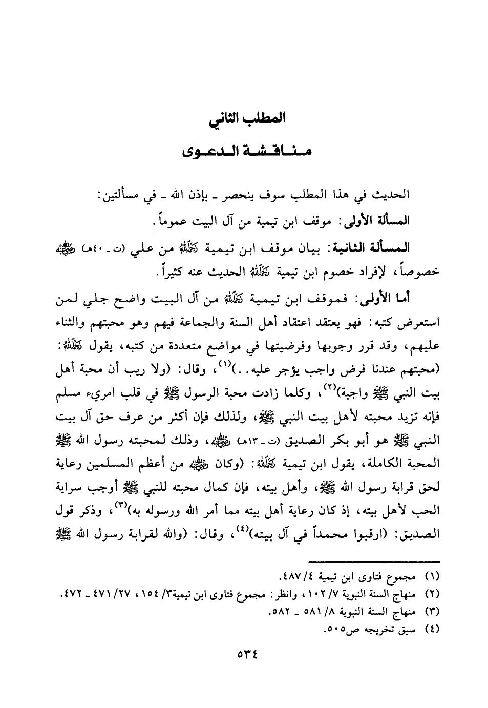 المسألة الأولى: موقف ابن تيمية من آل البيت عموماً.