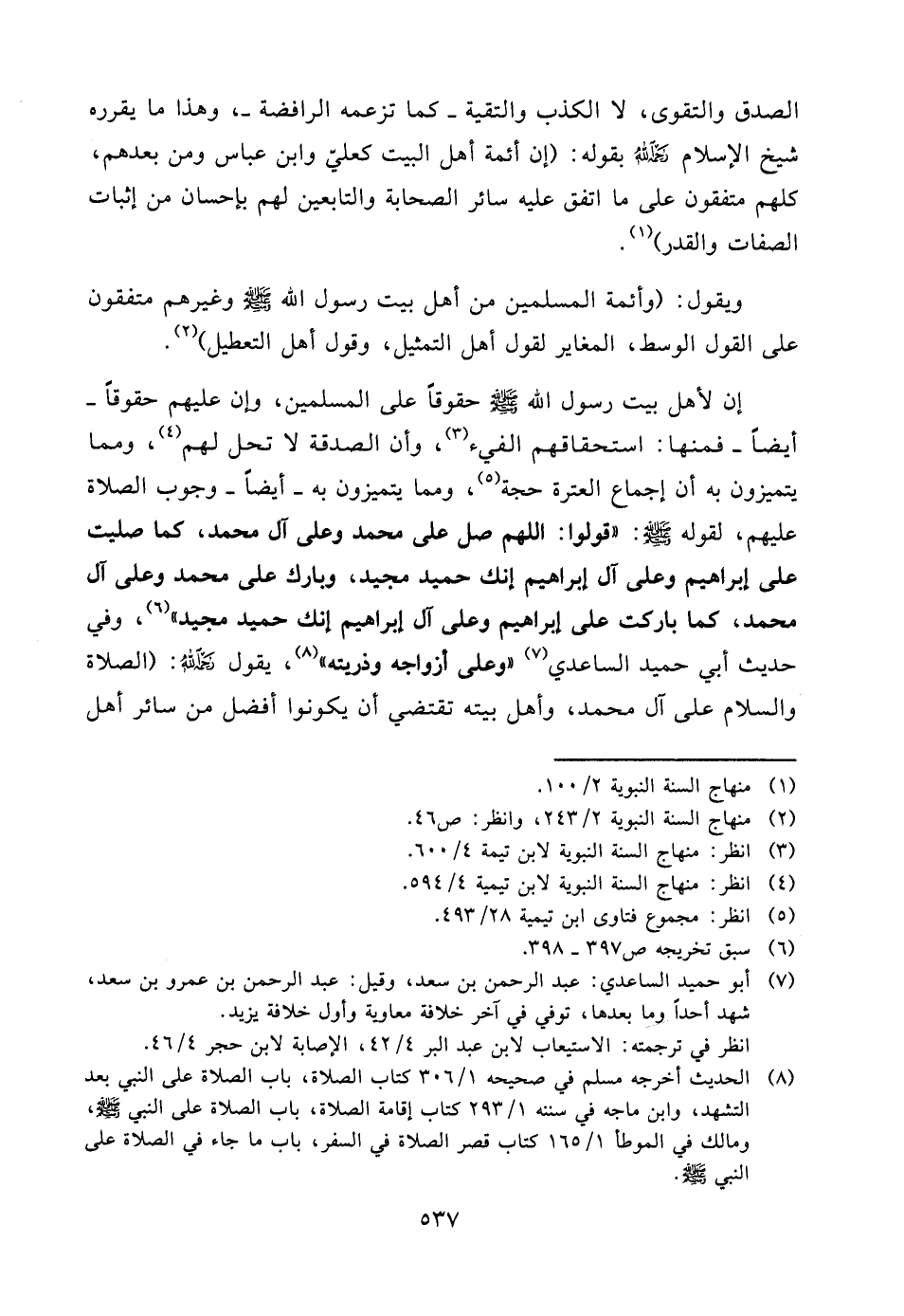 (¬8) الحديث أخرجه مسلم في صحيحه 1/306 كتاب الصلاة، باب الصلاة على النبي بعد التشهد، وابن ماجه في سننه 1/293 كتاب إقامة الصلاة، باب الصلاة على النبي صلّى الله عليه وسلّم، ومالك في الموطأ 1/165 كتاب قصر الصلاة في السفر، باب ما جاء في الصلاة على النبي صلّى الله عليه وسلّم.