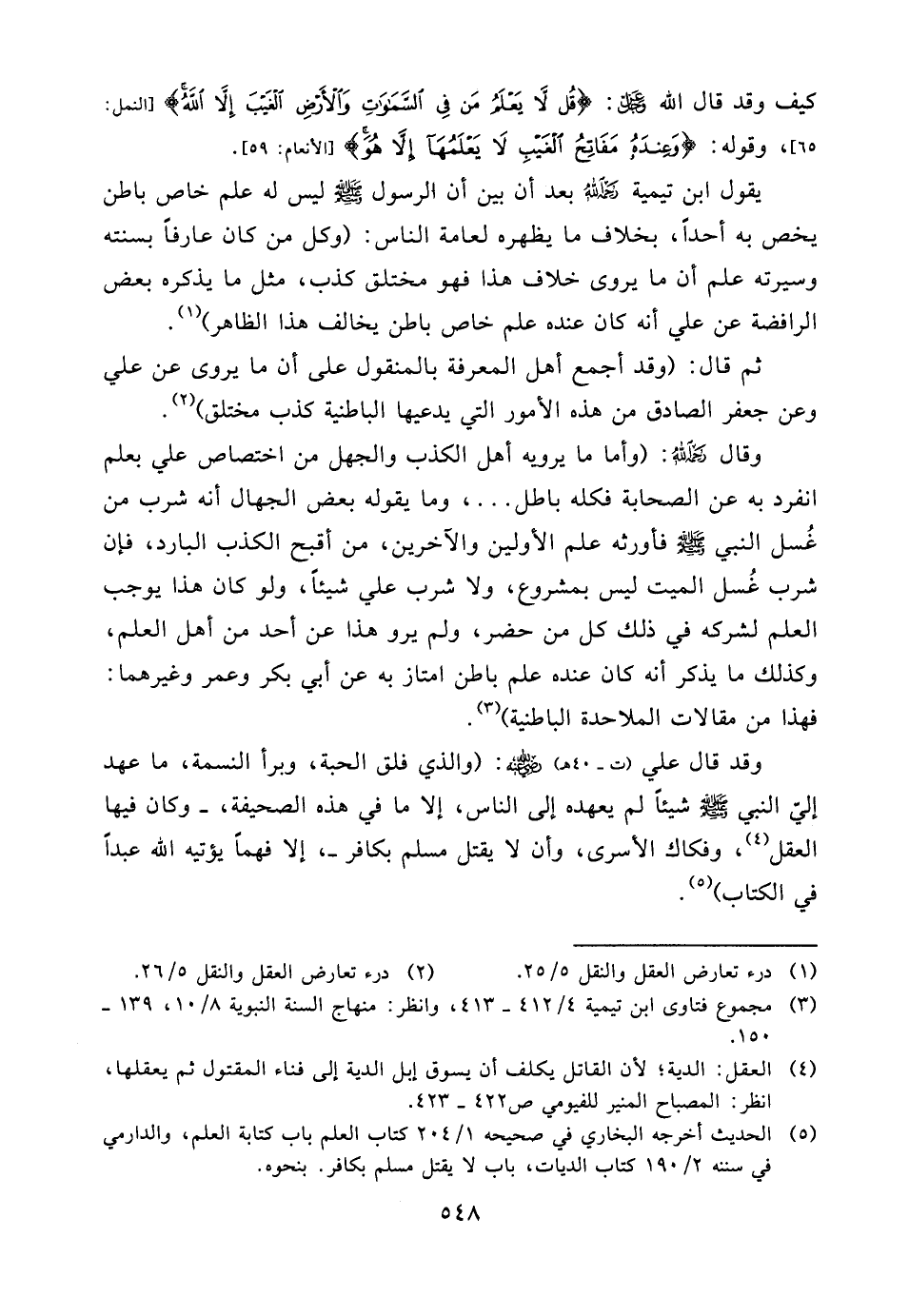 (¬2) درء تعارض العقل والنقل 5/26.