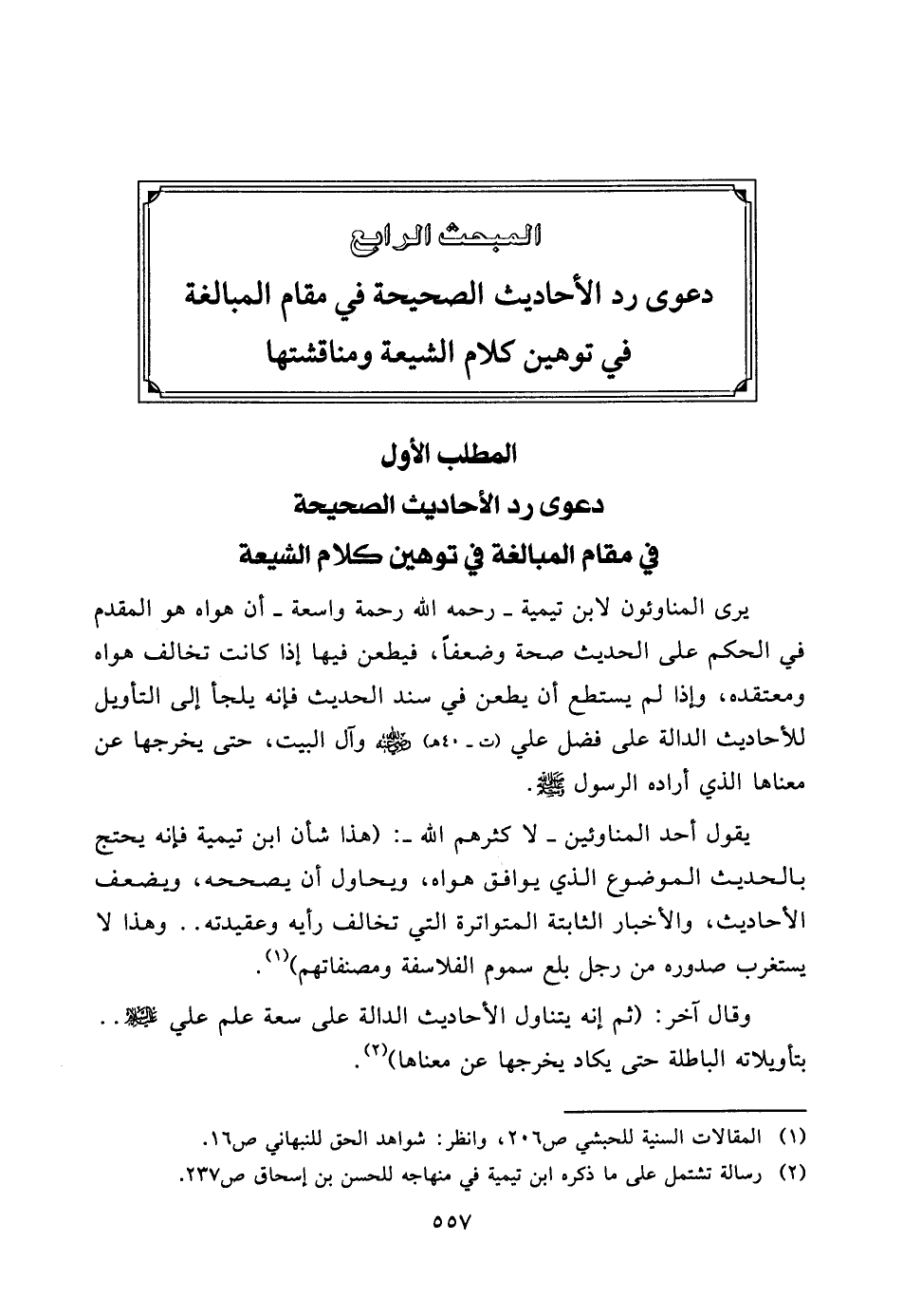 (¬2) رسالة تشتمل على ما ذكره ابن تيمية في منهاجه للحسن بن إسحاق ص237.