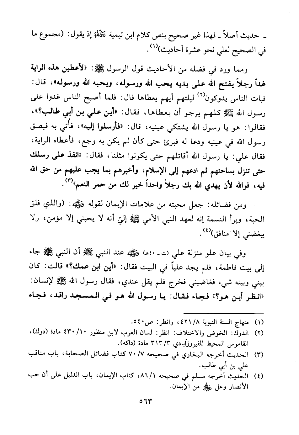 (¬3) الحديث أخرجه البخاري في صحيحه 7/70 كتاب فضائل الصحابة، باب مناقب علي بن أبي طالب.