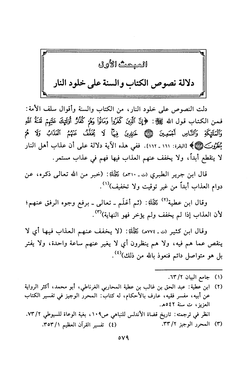 (¬2) ابن عطية: عبد الحق بن غالب بن عطية المحاربي الغرناطي، أبو محمد، أكثر الرواية عن أبيه، مفسر فقيه، عارف بالأحكام، له كتاب: المحرر الوجيز في تفسير الكتاب العزيز، ت سنة 542هـ.