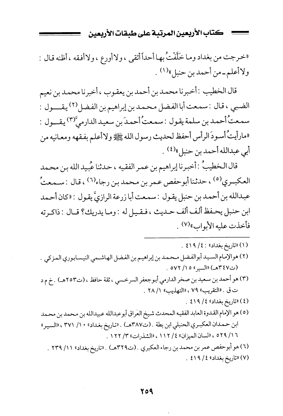 قال الخطيب: أخبرنا محمد بن أحمد بن يعقوب، أخبرنا محمد بن نعيم الضبي، قال: سمعت أبا الفضل محمد بن إبراهيم بن الفضل يقول: سمعت أحمد بن سلمة يقول: سمعت أحمد بن سعيد الدارمي يقول: ((ما رأيت أسود الرأس أحفظ لحديث رسول الله صلى الله عليه وسلم ولا أعلم بفقهه، ومعانيه من أبي عبد الله أحمد بن حنبل)) .