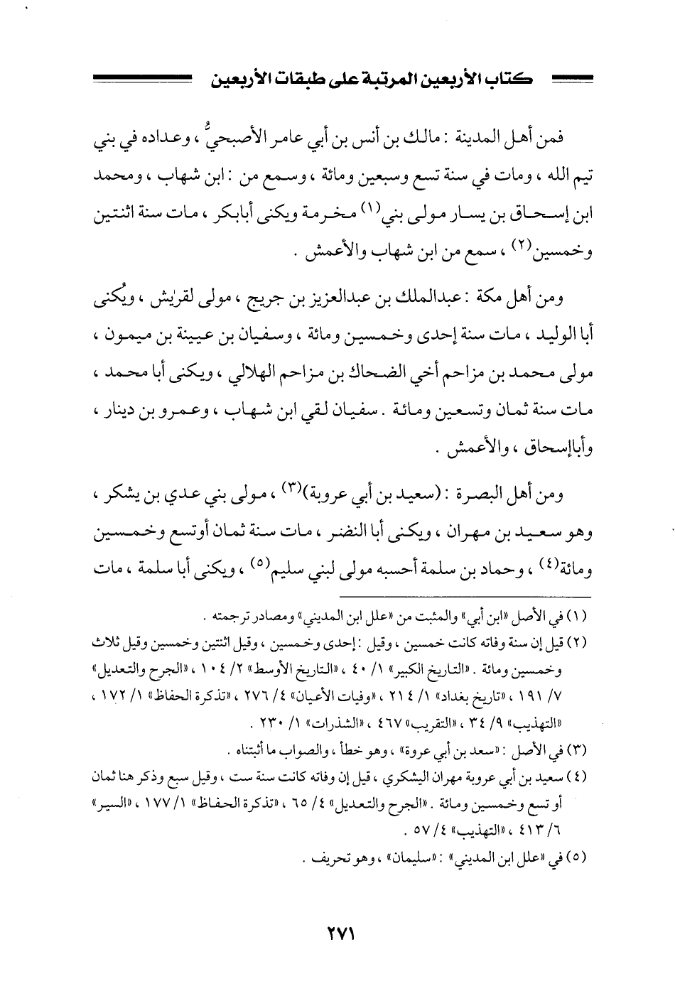 ومن أهل البصرة: (سعيد بن أبي عروبة) ، مولى بني عدي بن يشكر، وهو سعيد بن مهران، ويكنى أبا النضر، مات سنة ثمان أو تسع وخمسين ومائة، وحماد بن سلمة أحسبه مولى لبني سليم، ويكنى أبا سلمة، مات