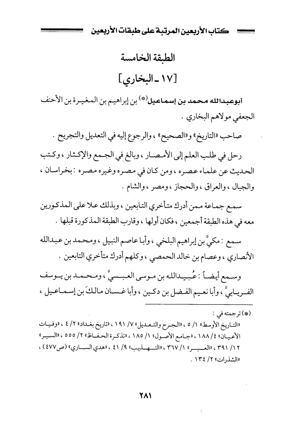 صاحب ((التاريخ)) و ((الصحيح)) ، والرجوع إليه في التعديل والتجريح.