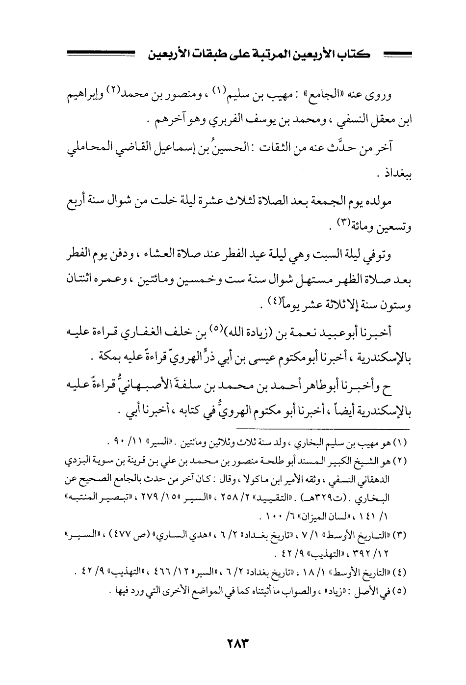 أخبرنا أبو عبيد نعمة بن (زيادة الله) بن خلف الغفاري قراءة عليه بالإسكندرية، أخبرنا أبو مكتوم عيسى بن أبي ذر الهروي قراءةً عليه بمكة.