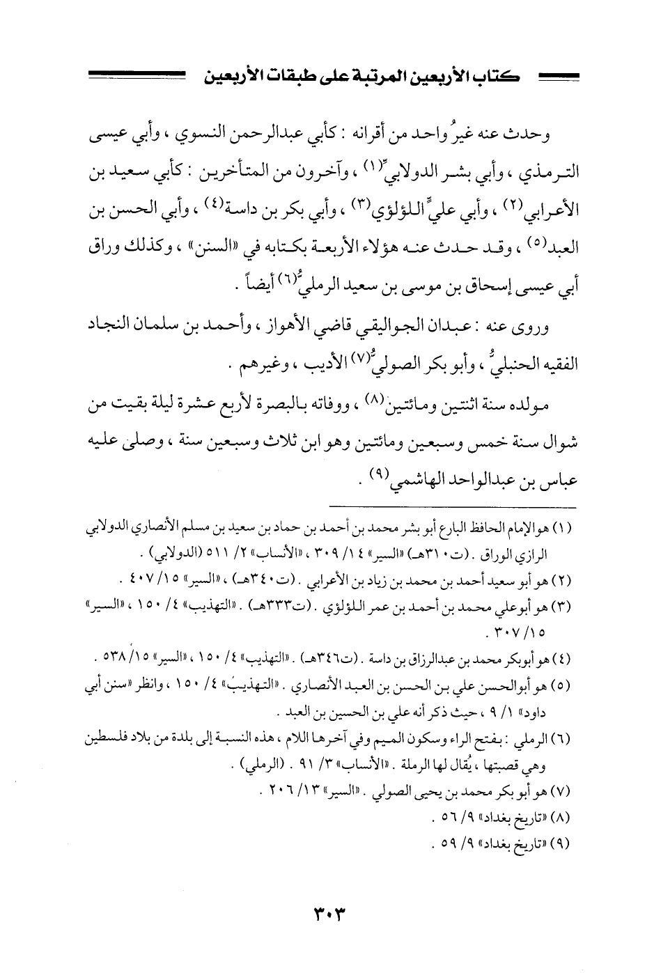 وحدث عنه غير واحد من أقرانه: كأبي عبد الرحمن النسوي، وأبي عيسى الترمذي، وأبي بشر الدولابي، وآخرون من المتأخرين: كأبي سعيد بن الأعرابي، وأبي علي اللؤلؤي، وأبي بكر بن داسة، وأبي الحسن بن العبد، وقد حدث عنه هؤلاء الأربعة بكتابة في ((السنن) ، وكذلك وراق أبي عيسى إسحاق بن موسى بن سعيد الرملي أيضاً.