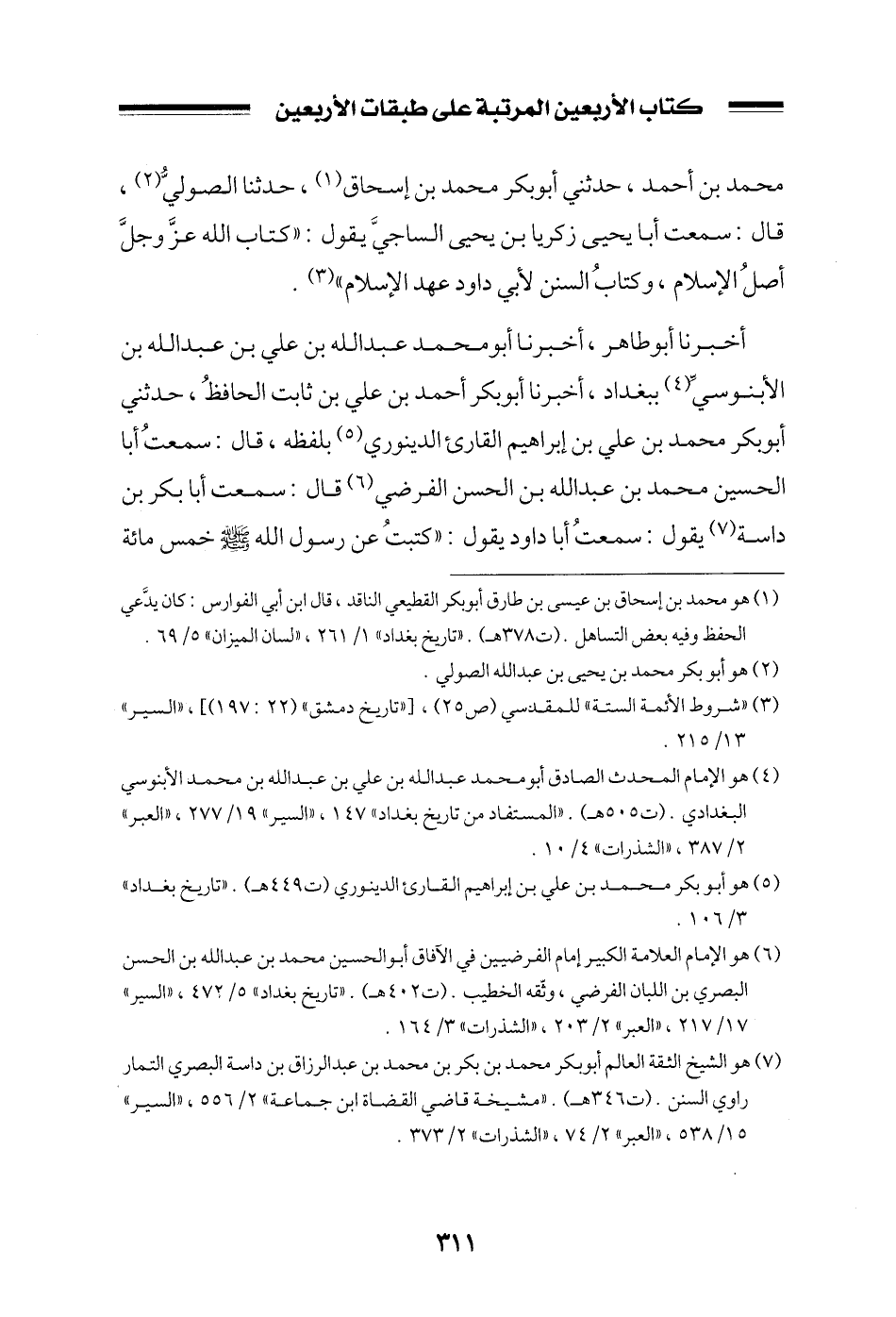 محمد بن أحمد، حدثني أبو بكر محمد بن إسحاق، حدثنا الصولي، قال: سمعت أبا يحيى زكريا بن يحيى الساجي يقول: ((كتاب الله عز وجل أصل الإسلام، وكتاب السنن لأبي داود عهد الإسلام)) .