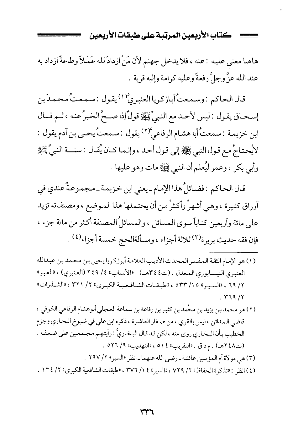 قال الحاكم: وسمعت أبا زكريا العنبري يقول: سمعت محمد بن إسحاق يقول: ليس لأحد مع النبي صلى الله عليه وسلم قولٌ إذا صح الخبر عنه، ثم قال ابن خزيمة: سمعت أبا هشام الرفاعي يقول: سمعت يحيى بن آدم يقول: لا يحتاج مع قول النبي صلى الله عليه وسلم إلى قول أحد، وإنما كان يقال: سنة النبي صلى الله عليه وسلم وأبي بكر، وعمر ليعلم أن النبي صلى الله عليه وسلم مات وهو عليها.