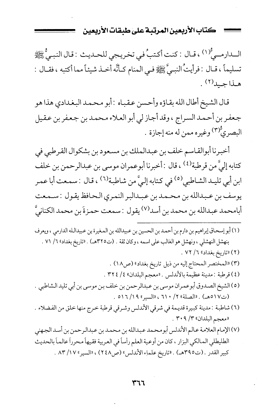 أخبرنا أبو القاسم خلف بن عبد الملك بن مسعود بن بشكوال القرطبي في كتابه إلي من قرطبة، قال: أخبرنا أبو عمران موسى بن عبد الرحمن بن خلف ابن أبي تليد الشاطبي في كتابه إلي من شاطبة، قال: سمعت أبا عمر يوسف بن عبد الله بن محمد بن عبد البر النمري الحافظ يقول: سمعت أبا محمد عبد الله بن محمد بن أسد يقول: سمعت حمزة بن محمد الكناني