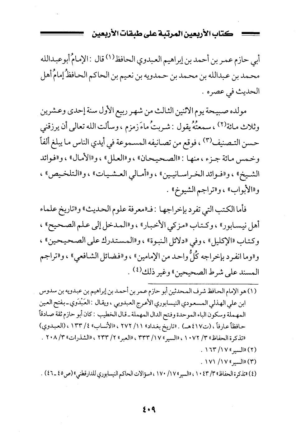 أبي حازم عمر بن أحمد بن إبراهيم العبدوي الحافظ قال: الإمام أبو عبد الله محمد بن عبد الله بن محمد بن حمدويه بن نعيم بن الحاكم الحافظ إمام أهل الحديث في عصره.