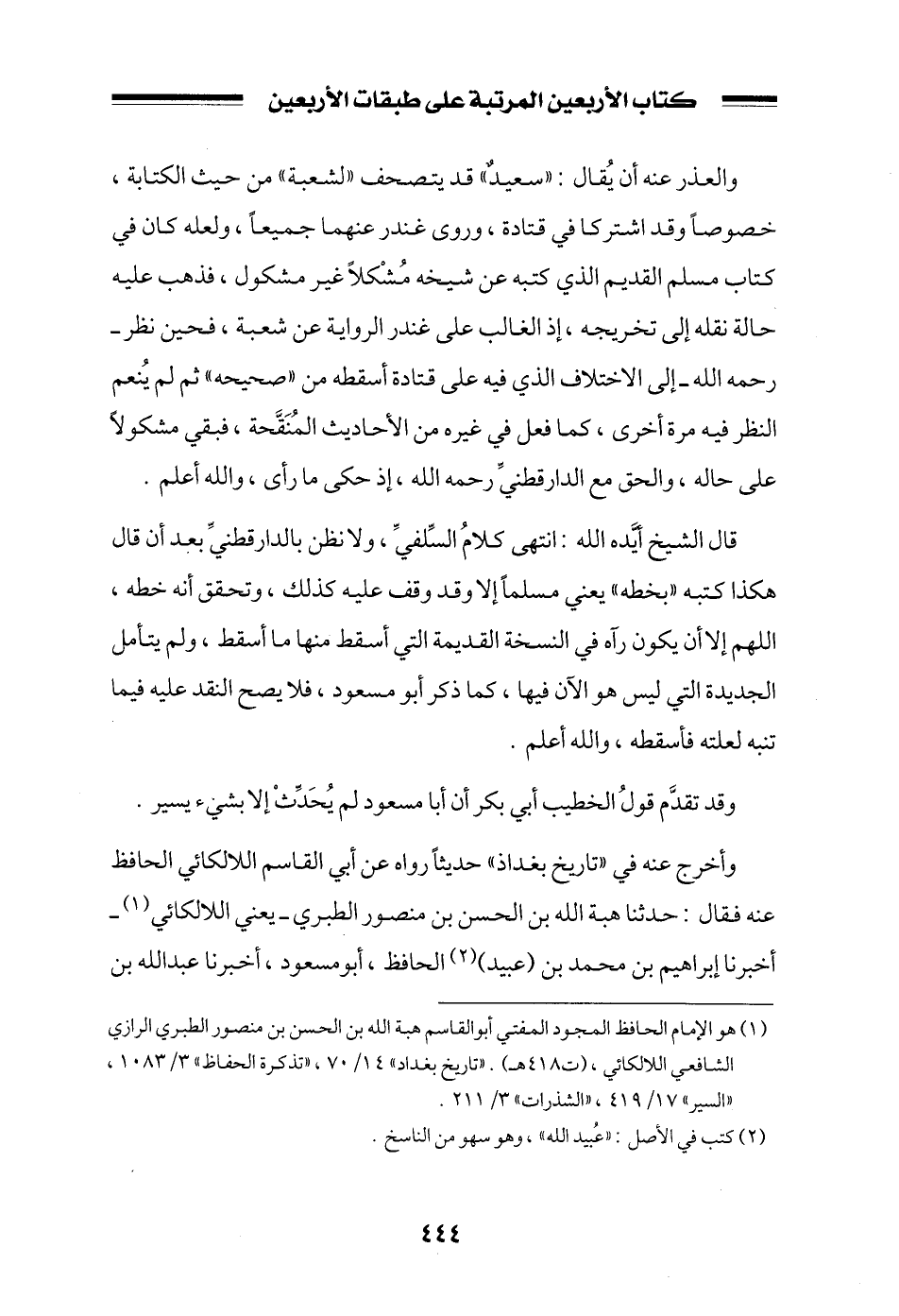 قال الشيخ أيده الله: انتهى كلام السلفي، ولا نظن بالدارقطني بعد أن قال هكذا كتبه ((بخطه)) يعني مسلماً إلا وقد وقفت عليه كذلك، وتحقق أنه خطه، اللهم إلا أن يكون رآه في النسخة القديمة التي أسقط منها ما أسقط، ولم يتأمل الجديدة التي ليس هو الآن فيها، كما ذكر أبو مسعود، فلا يصح النقد عليه فيما تنبه لعلته فأسقطه، والله أعلم.