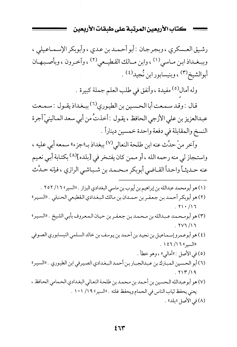 رشيق العسكري، وبجرجان: أبو أحمد بن عدي، وأبو بكر الإسماعيلي، وببغداذ ابن ماسي، وابن مالك القطيعي، وآخرون، وبأصبهان أبو الشيخ، وبنيسابور ابن نجيد.
