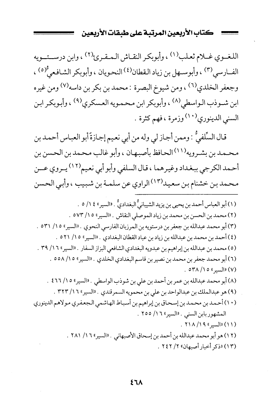 قال السلفي: وممن أجاز لي وله من أبي نعيم إجازةً أبو العباس أحمد بن محمد بن بشرويه الحافظ بأصبهان، وأبو غالب محمد بن الحسن بن أحمد الكرجي ببغداد وغيرهما، قال السلفي وأبو نعيم يروي عن محمد بن خشنام بن سعيد الراوي عن سلمة بن شبيب، وأبي الحسن