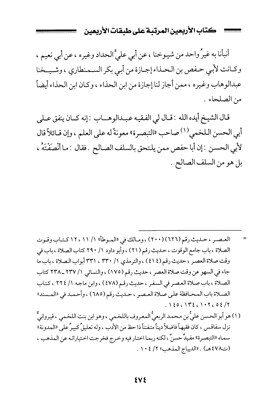 أنبأنا به غير واحد من شيوخنا، عن أبي علي الحداد وغيره، عن أبي نعيم، وكانت لأبي حفص بن الحذاء إجازة من أبي بكر السمنطاري، وشيخنا عبد الوهاب وغيره، ممن جاز لنا إجازة من أبي الحذاء، وكان ابن الحذاء أيضاً من الصلحاء.