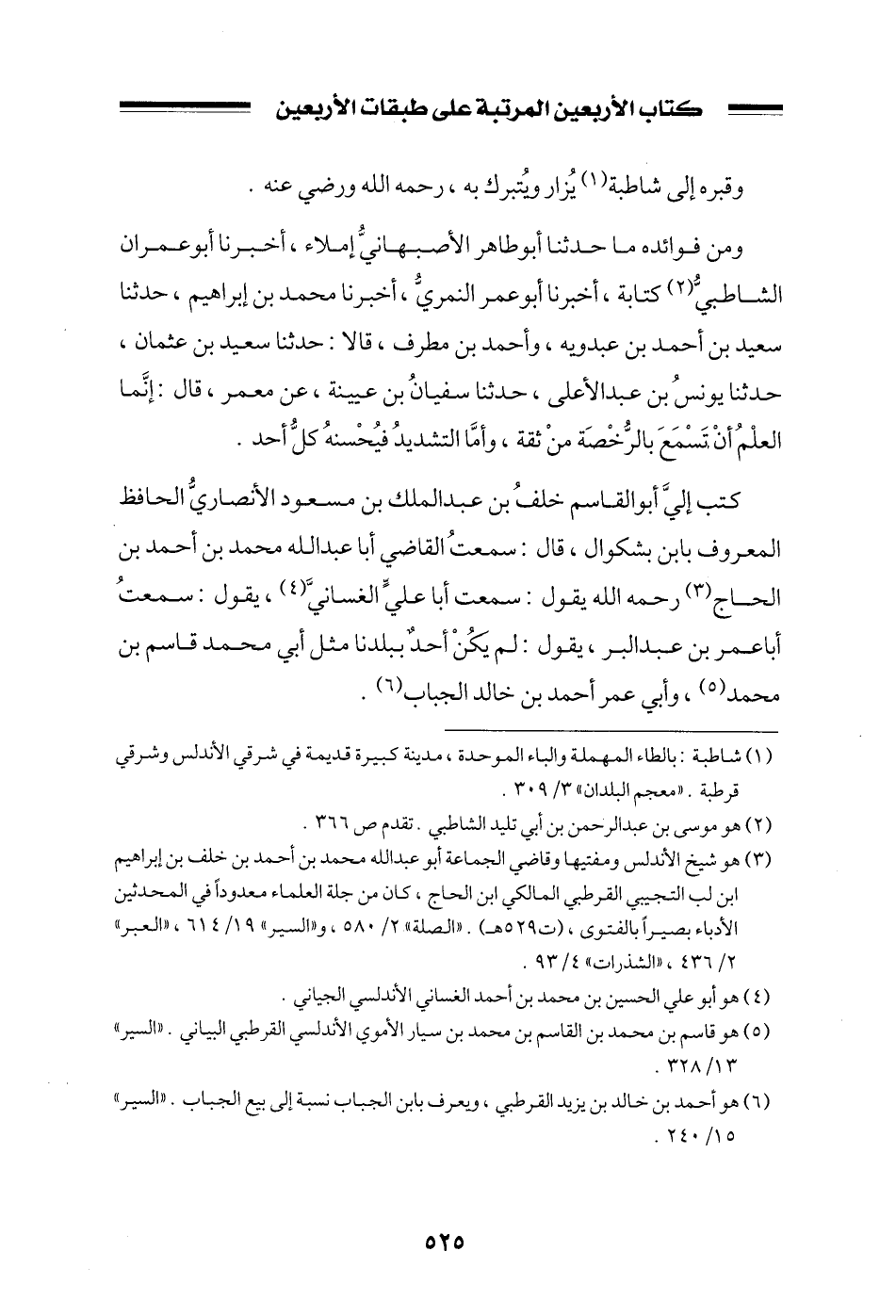 كتب إلي أبو القاسم خلف بن عبد الملك بن مسعود الأنصاري الحافظ المعروف بابن بشكوال، قال: سمعت القاضي أبا عبد الله محمد بن أحمد بن الحاج رحمه الله يقول: سمعت أبا علي الغساني، يقول: سمعت أبا عمر بن عبد البر، يقول: لم يكن أحدٌ ببلدنا مثل أبي محمد قاسم بن محمد، وأبي عمر أحمد بن خالد الجباب.