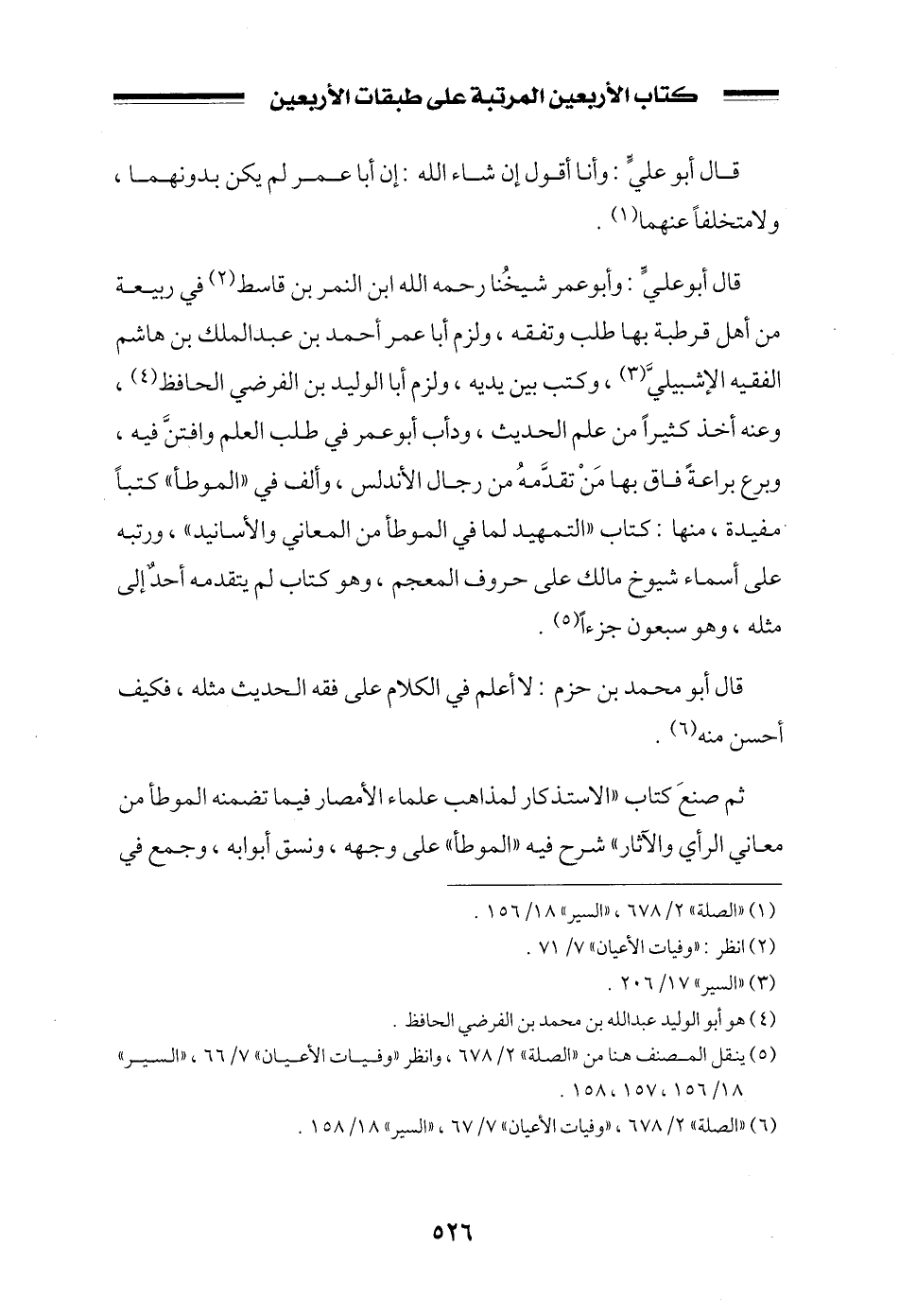 قال أبو علي: وأبو عمر شيخنا رحمه الله ابن النمر بن قاسط في ربيعة من أهل قرطبة بها طلب وتفقه، ولزم أبا عمر أحمد بن عبد الملك بن هاشم الفقيه الإشبيلي، وكتب بين يديه، ولزم أبا الوليد بن الفرضي الحافظ، وعنه أخذ كثيراً من علم الحديث، ودأب أبو عمر في طلب العلم وافتن فيه، وبرع براعةً فاق بها من تقدمه من رجال الأندلس، وألف في ((الموطأ)) كتباً مفيدة، منها كتاب ((التمهيد لما في الموطأ من المعاني والأسانيد)) ، ورتبه على أسماء شيوخ مالك على حروف المعجم، وهو كتاب لم يتقدمه أحدٌ إلى مثله، وهو سبعون جزءاً.