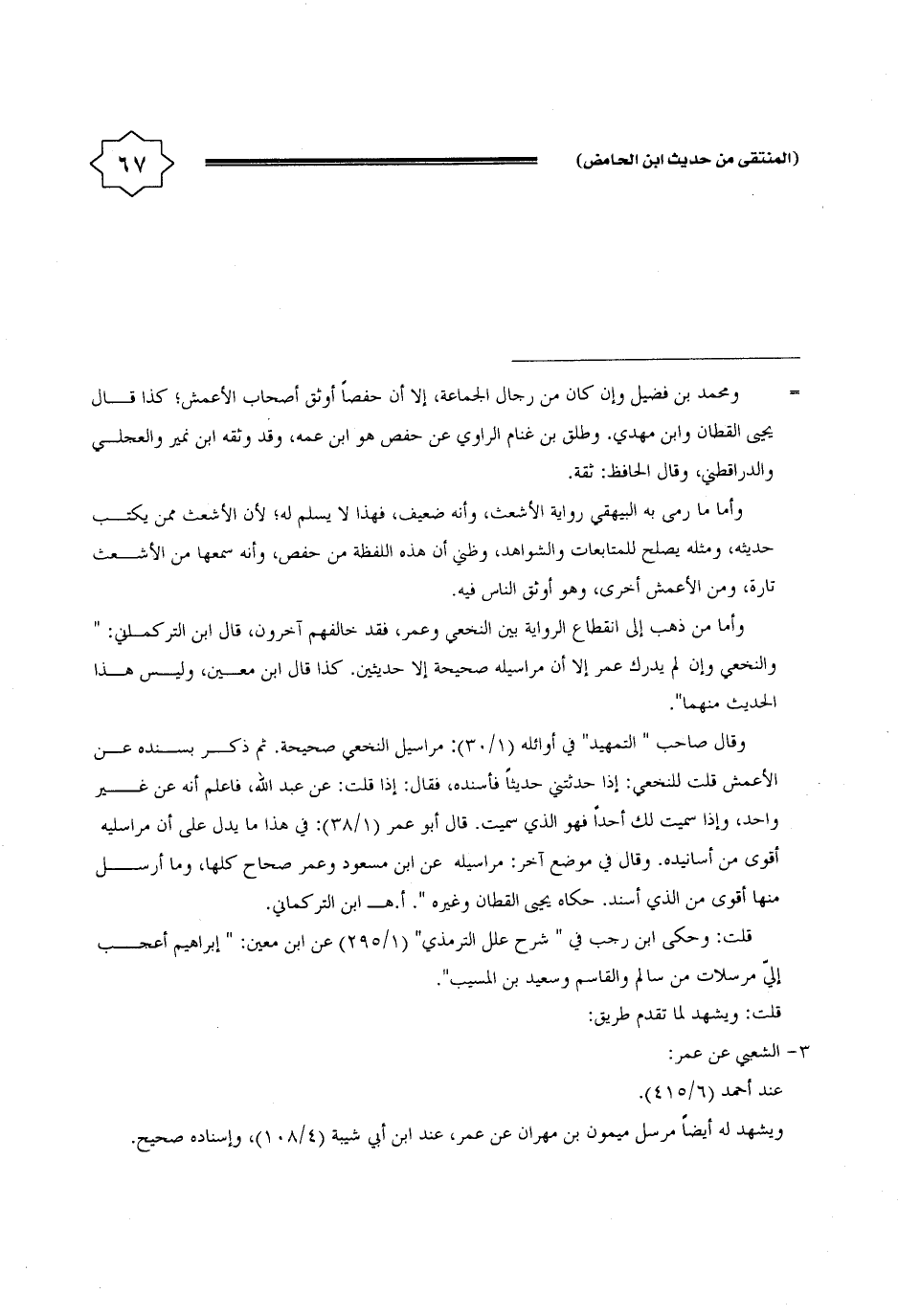 كتاب منتقى من الجزء الأول والثالث من حديث المروزي