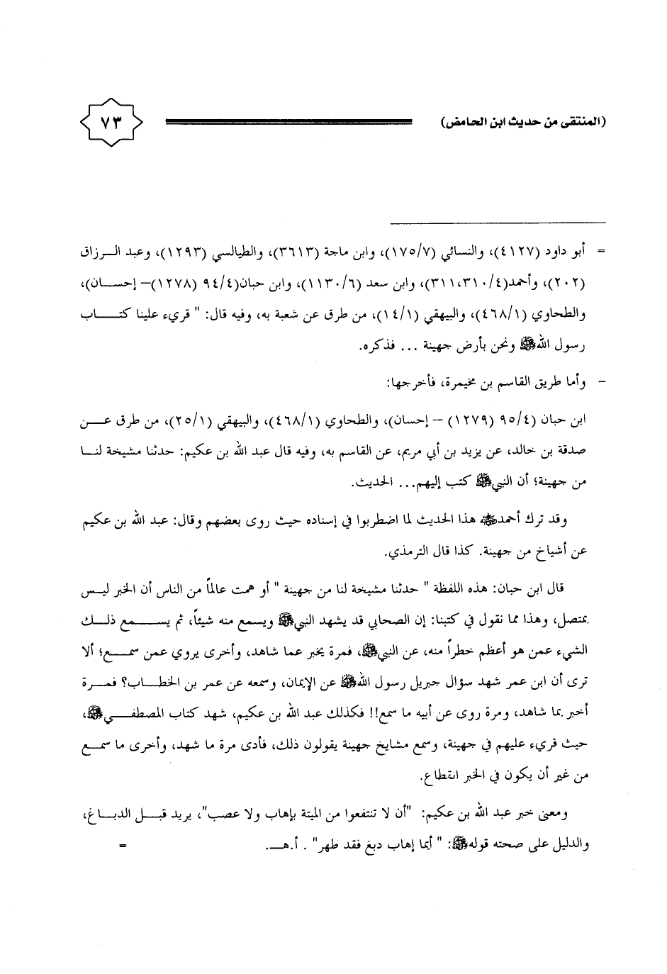 كتاب منتقى من الجزء الأول والثالث من حديث المروزي