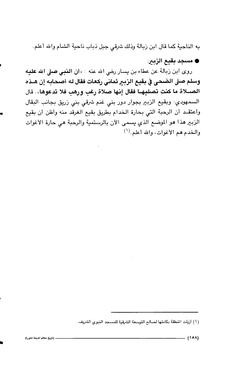 158…به الناحية كما قال ابن زبالة وذلك شرقي جبل ذباب ناحية الشام والله أعلم.