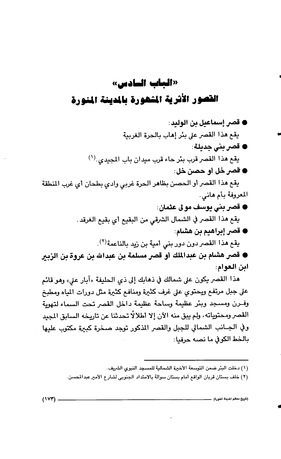 " الباب السادس " القصور الأثرية المشهورة بالمدينة المنورة