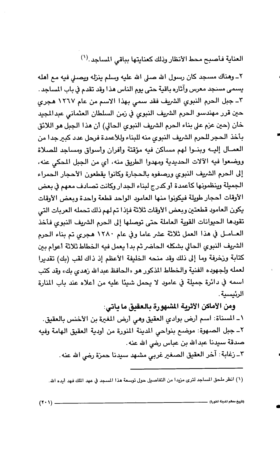 (1) انظر ملحق المساجد لترى مزيداً من التفاصيل حول توسعة هذا المسجد في عهد الملك فهد أيده الله.