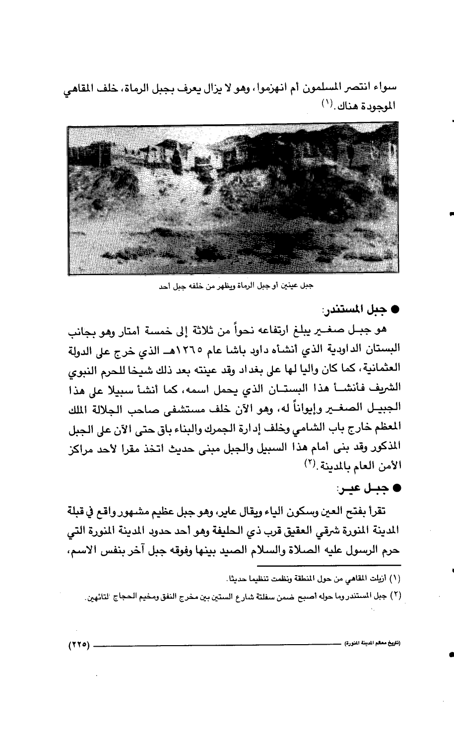 225…سواء انتصر المسلمون أم انهزموا، وهو لا يزال يعرف بجبل الرماة، خلف المقاهي الموجودة هناك. (1)