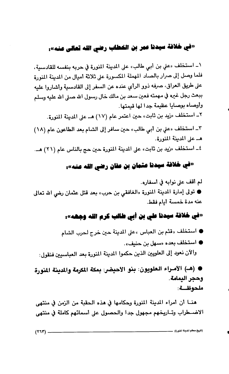 * استخلف بعده " سهل بن حنيف ". والآن نعود إلى العلويين الذين حكموا المدينة المنورة بعد العباسيين فنقول: